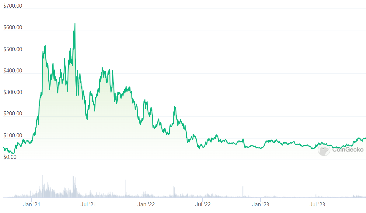 Market Performance: Aave's market performance has been characterized by its responsiveness to DeFi market trends and broader cryptocurrency movements. Its price has seen substantial growth, particularly during DeFi's explosive growth phase, reflecting its integral role in the sector.