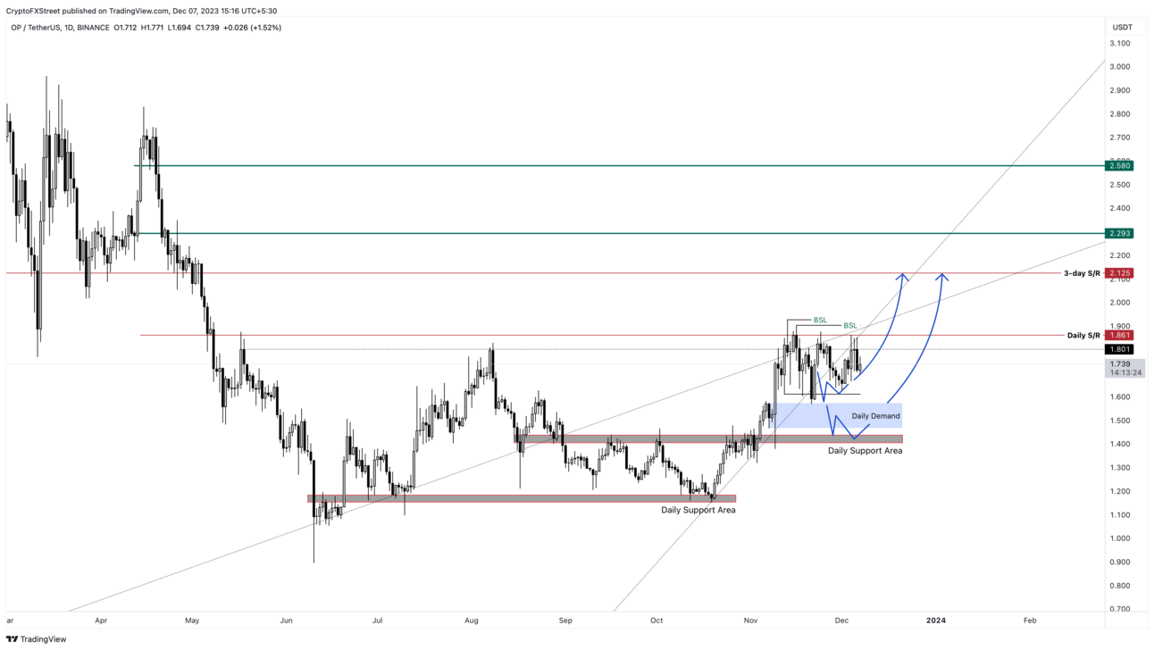 Optimism (OP) has been consolidating below the daily resistance level of $1.86 for nearly seven months.